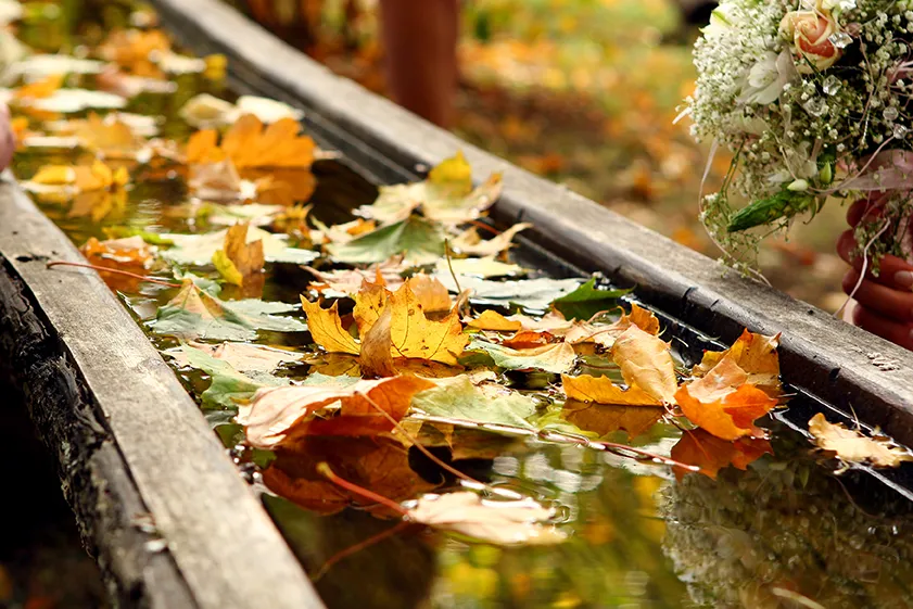 Pflege braucht jetzt auch der Gartenteich. Hier startet der Herbst früher als im restlichen Garten, da es nur wenige Teichpflanzen mit später Blüte gibt. Manche Gewächse beginnen schon Ende August mit ihrem Rückzug. Daher ist es ratsam, bereits jetzt alle vergilbenden und umgeknickten, weichblättrigen Pflanzen zurückzuschneiden, damit das Wasser nicht unnötig belastet wird. Es empfiehlt sich darüber hinaus auch, die Fruchtstände, die manche Uferpflanzen nun bilden, zu entfernen. Dies verhindert, dass die Pflanzen durch Versamung zu wuchern beginnen. Nach einem heißen Sommer muss eventuell Wasser im Teich aufgefüllt werden. Wer den Garten jetzt richtig versorgt, kann bald goldenen Zeiten entgegen sehen: Wenn die Herbstzeitlosen (Colchicum autumnale) blühen, ist das Ende des Spätsommers gekommen, doch bei guter Pflege hält der Garten noch viele blühende und farbstarke Überraschungen bereit.
